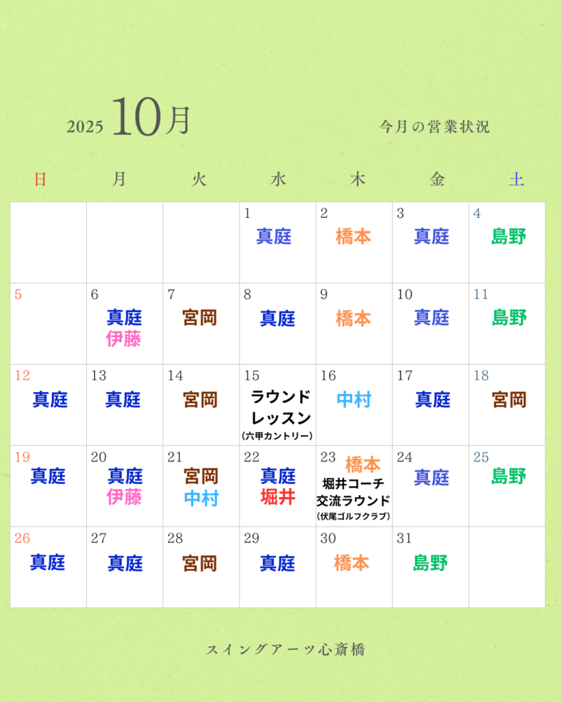 2025.09.25 コーチスケジュール表 スイングアーツ心斎橋 10月コーチスケジュール スイングアーツ事務局LINEやInstagra、Xでも情報発信しています。 chevron_left 一覧へ戻る