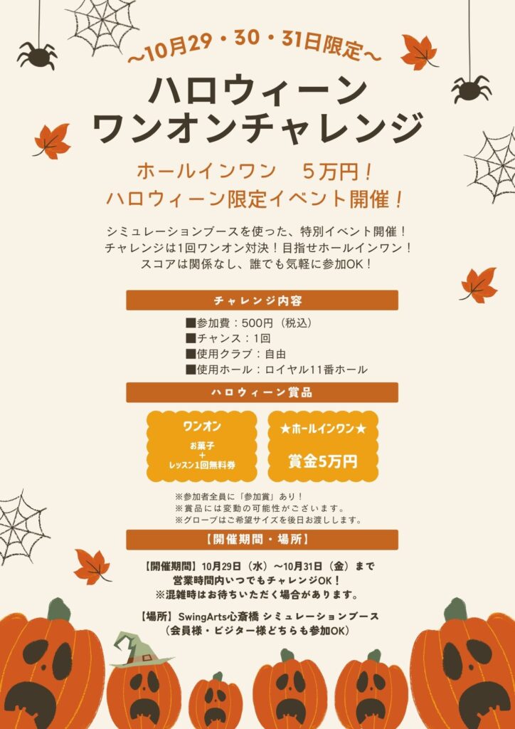 今年のハロウィーンは、いつもとちょっと違うドキドキのゴルフイベントを開催します!