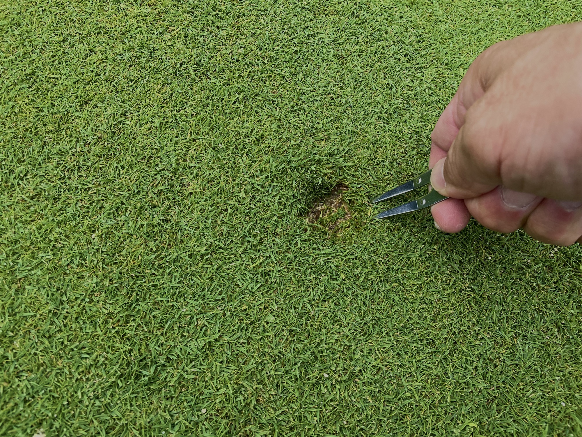 そして、グリーンのボールマーク修復。