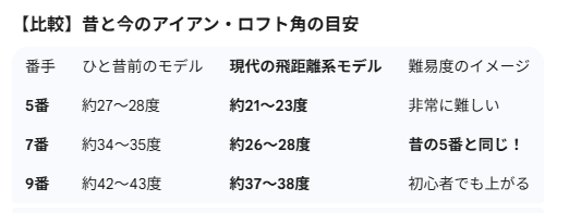 - ロフト角が 立っている → ボールが上がりにくく、距離は出やすい